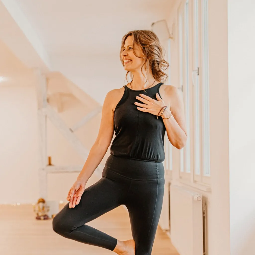Nicole ist zertifizierte Yogalehrerin nach den Richtlinien der American Yoga Alliance (RYT 500) – mit Ausbildungen in Deutschland und Indien. Als Diplom-Fitnessökonomin verbindet sie fachliche Kompetenz mit ganzheitlichem Denken. Sie lebt in Köln und begeistert mit ihrer authentischen, herzlichen Art – klar in der Anleitung, präsent im Moment und mit spürbarer Leidenschaft für Yoga.