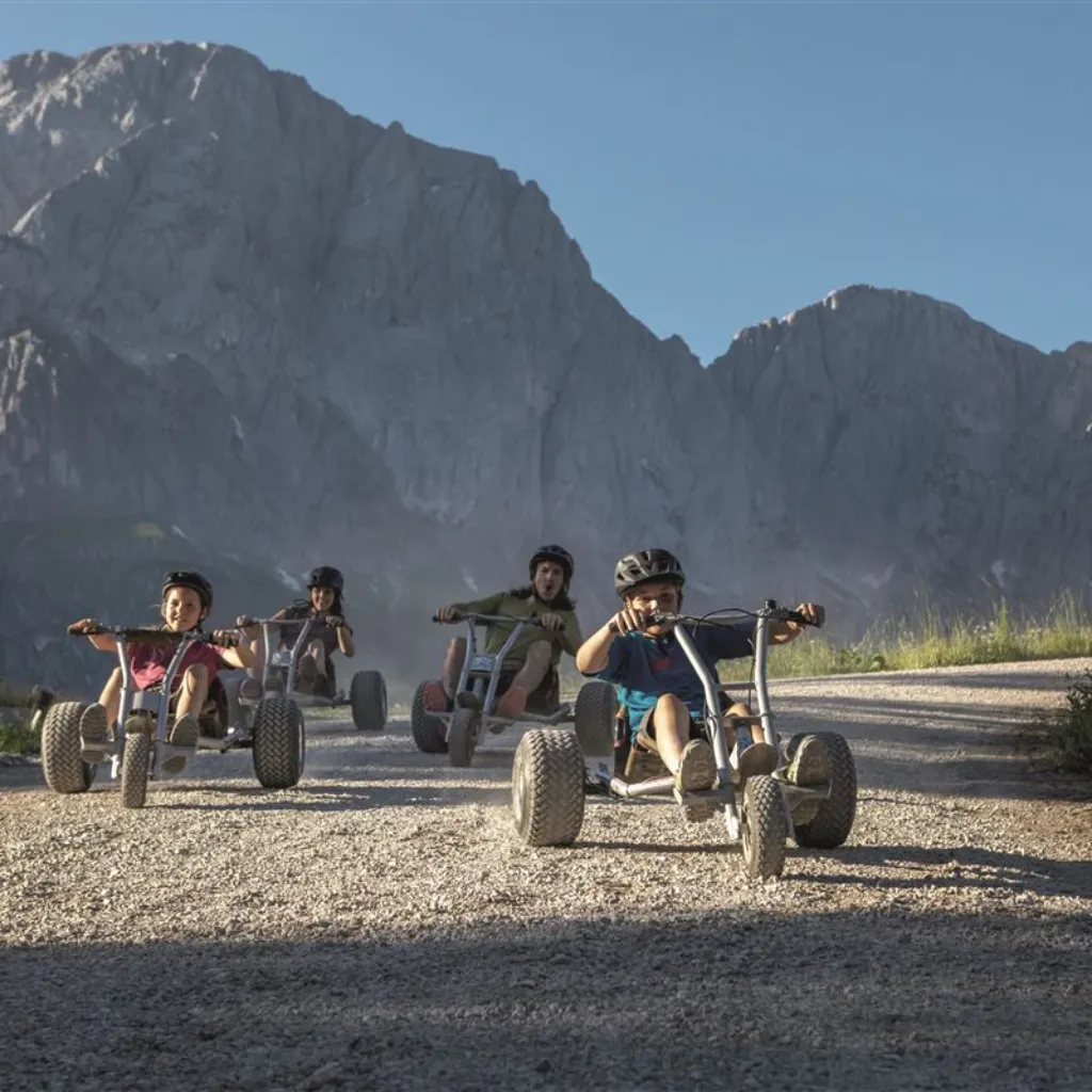 Das Fahren mit dem Mountain Cart ist am Hochkönig bei Urlaubern besonders beliebt und bietet die perfekte Kombination aus Action, Naturerlebnis und Adrenalin. Das Rodelvergnügen der anderen Art sorgt für ein unvergessliches Offroad-Abenteuer durch malerische Landschaften. Rasante Talfahrten garantieren dir den besonderen Kick und sind ein tolles Erlebnis für den gemeinsamen Familienurlaub in Österreich. Das Coole: Du kannst die Geschwindigkeit deines Mountain Carts selbst steuern und benötigst keinerlei technisches Know-how. Das macht Mountain Cart fahren in Österreich zu einer beliebten Freizeitaktivität.